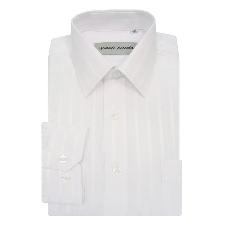 Классическая рубашка прямого силуэта, с отложным воротником, застёжкой на пуговицы и длинными рукавами. Спинка с двойной кокеткой и двумя защипами. Левый нагрудный карман с пуговицей.