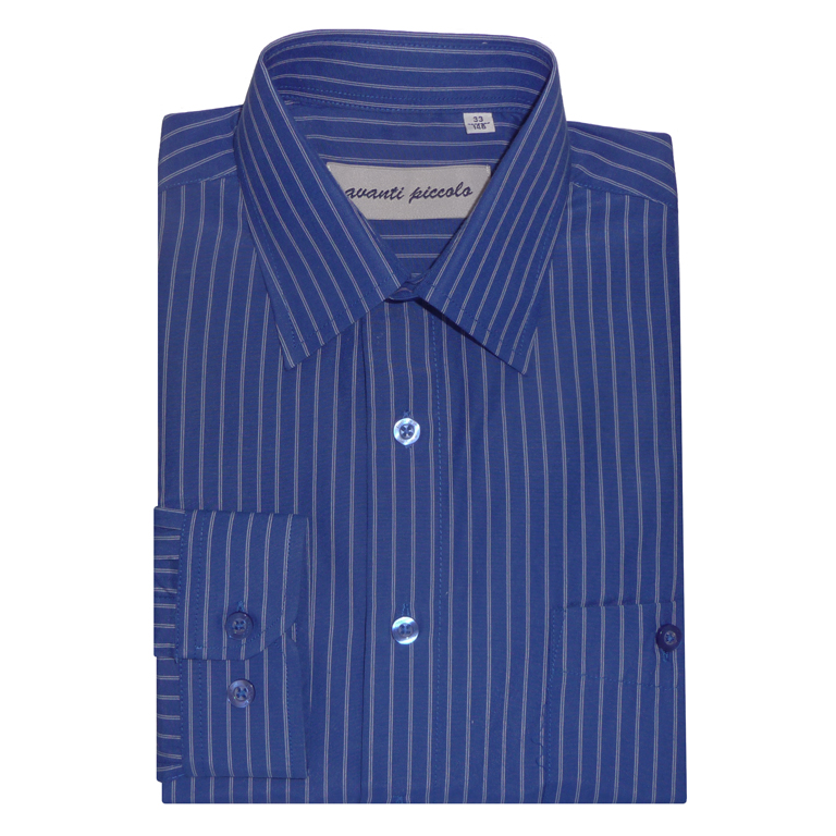 Классическая рубашка прямого силуэта, с отложным воротником, застёжкой на пуговицы и длинными рукавами. Спинка с двойной кокеткой и двумя защипами. Левый нагрудный карман с пуговицей.