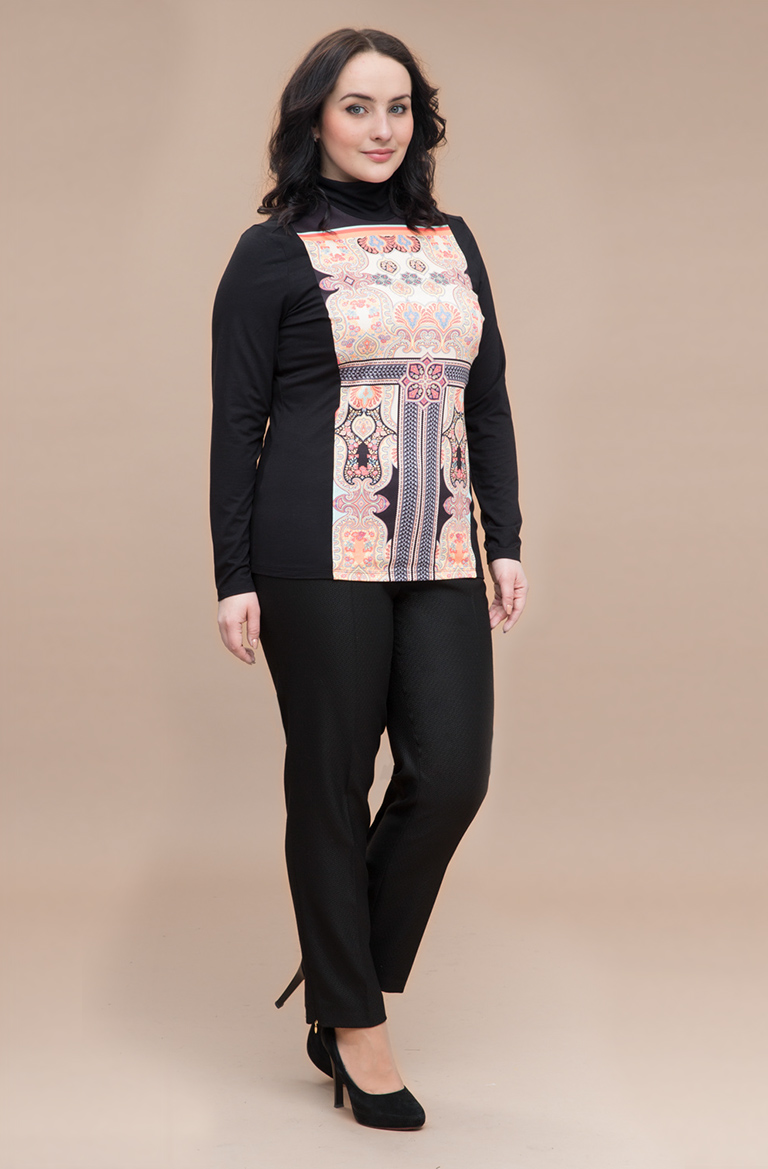 Блуза-гольф Вискозный трикотаж с содержанием эластана Яркий платочный принт Воротник-стойка