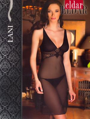 Комплект: Сорочка из микросеточки на тонких бретелях, спереди кружевные вставки. Стринги однотонные, из микросеточки.