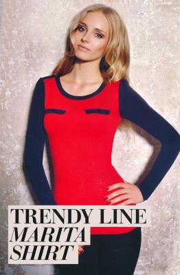 Блузка женская с длинным рукавом, полуприлегающий силуэт, с круглым вырезом по горловине, спереди имитация карманов, контрастная окантовка по вырезу горловины.