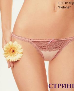 Стринги с декоративной тонкой боковой частью, спереди кружевная вставка.