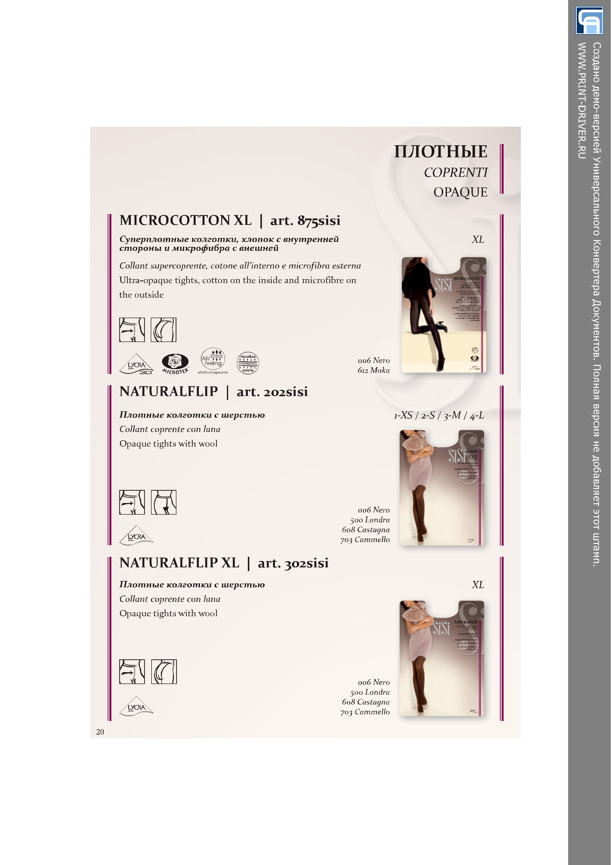 Очень плотные, равномерные, матовые колготки, двухслойные: внутренняя сторона - хлопок, внешняя - микрофибра; невидимый мысок, ластовица.