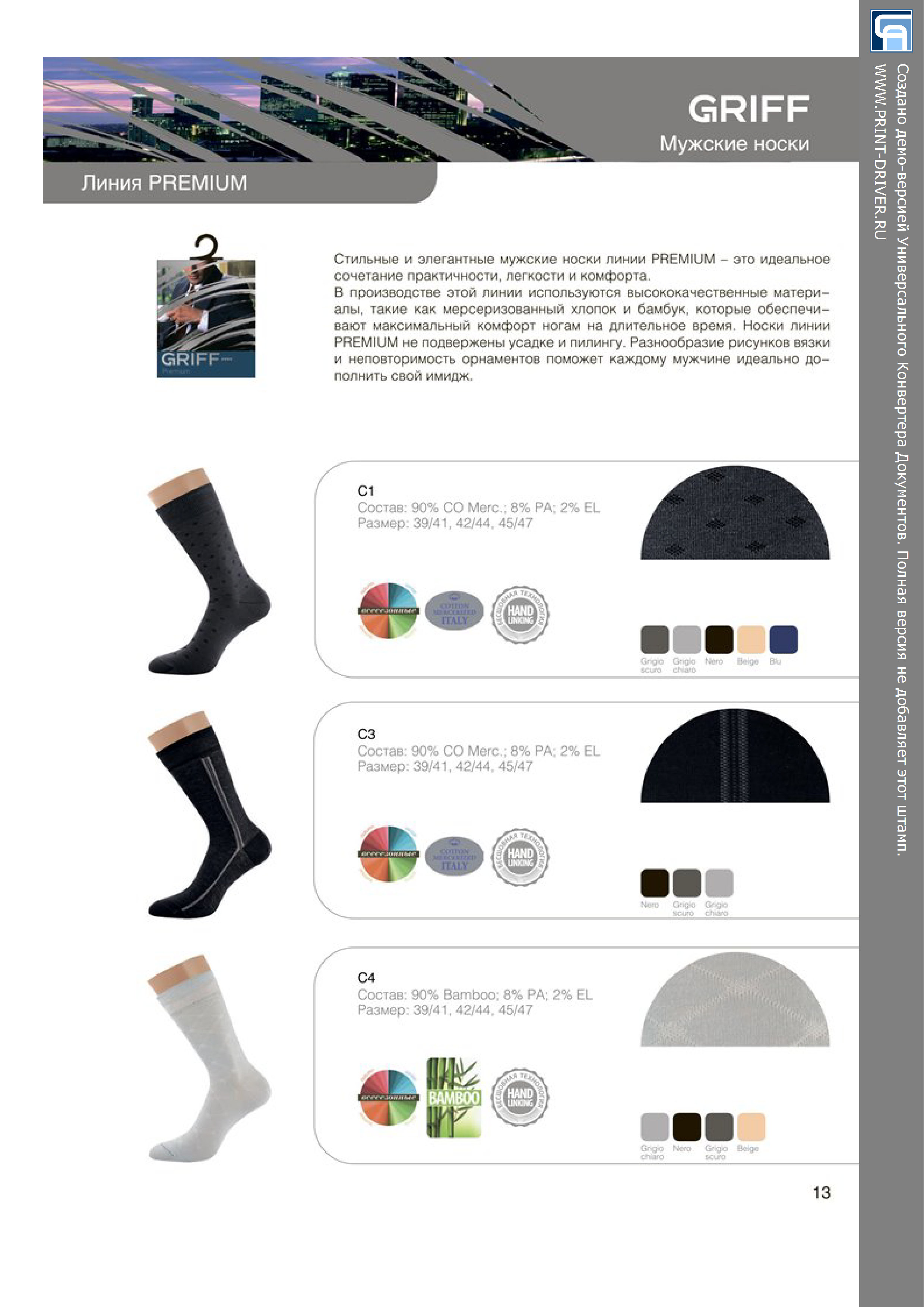 Носки мужские с ромбиками по всему полотну.