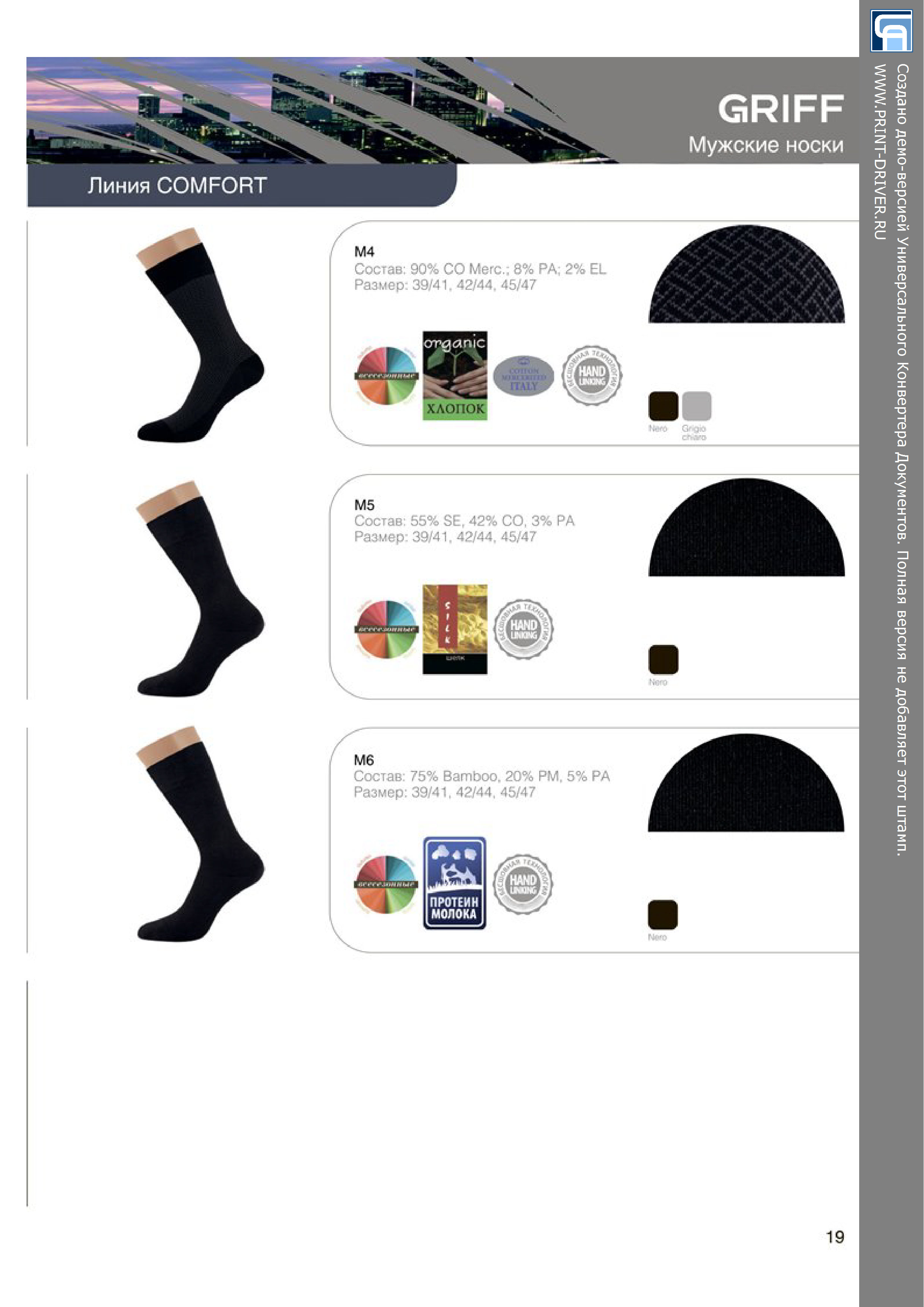 Носки мужские, с мелким геометрическим рисунком по всему полотну изделия.