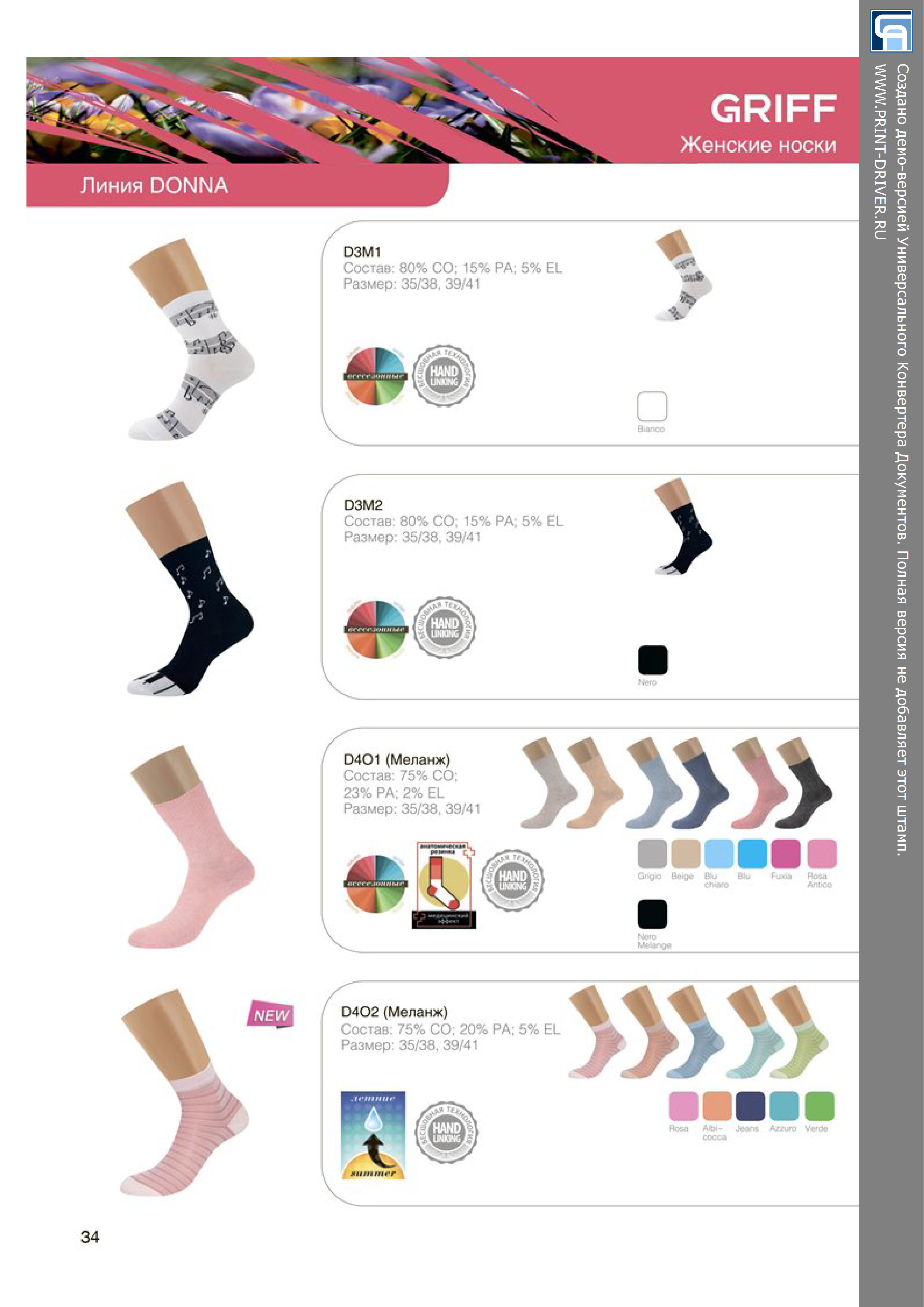 Носки женские с рисунком "ноты" по всей длинне.