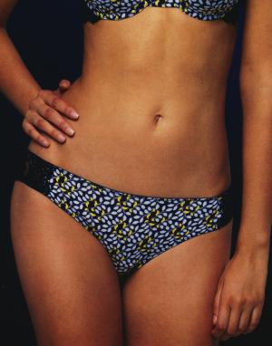 Бразильяна из микрофибры с "растительным" контрастным принтом, сзади кружевные.
