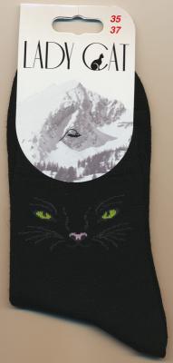Носки женские классические, с забавным цветным принтом "Кошачья мордочка" сбоку.