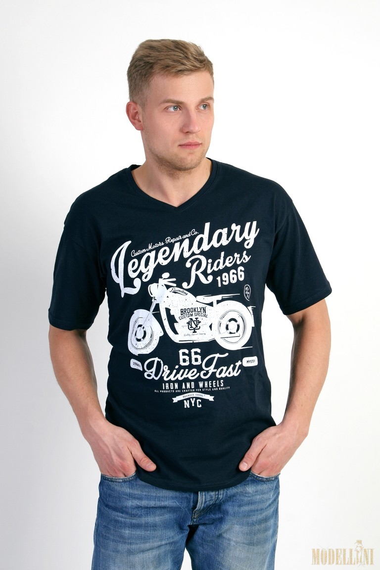 Футболка для мужчин классического кроя с короткими рукавами. Горловина с V-вырезом. На передней полочке размещена печать методом шелкографии. Рисунки печати разные. Цвета: черный, белый, синий, темно-синий, серый меланж.