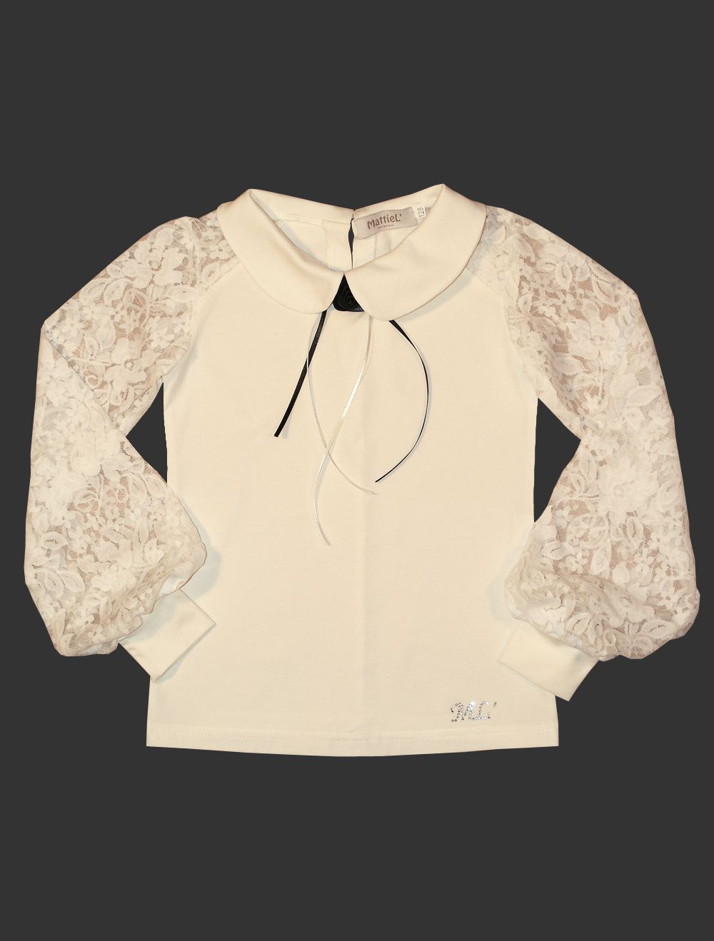 Блузка нарядная для школы. Блузка на девочку из трикотажа и кружева, декорирована розочкой.