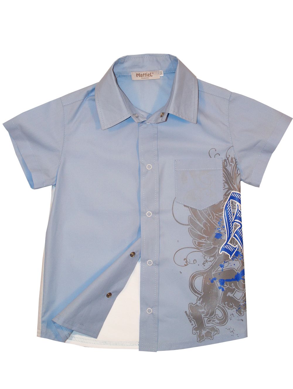 Рубашка для мальчика из хлопка, удобная для прогулок. Полочка декорирована принтом, спинка из трикотажа. Застежка-планка на кнопки.