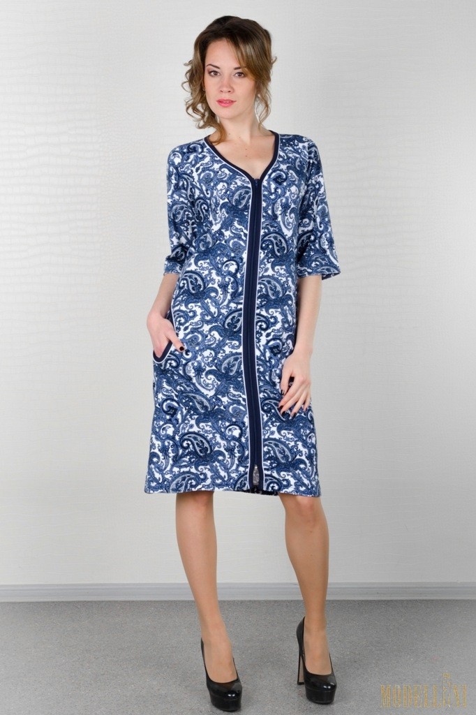 Описание: Классический халат прямого силуэта выполнен на молнии, с карманами, рукавами 3/4 длины, с окантовой контрастного цвета. Удобный вариант для повседневного пользования, так как изготовлен из трикотажного полотна содержанием 80% хлопка - петельчатой махры - новая расцветка цветы+полоска